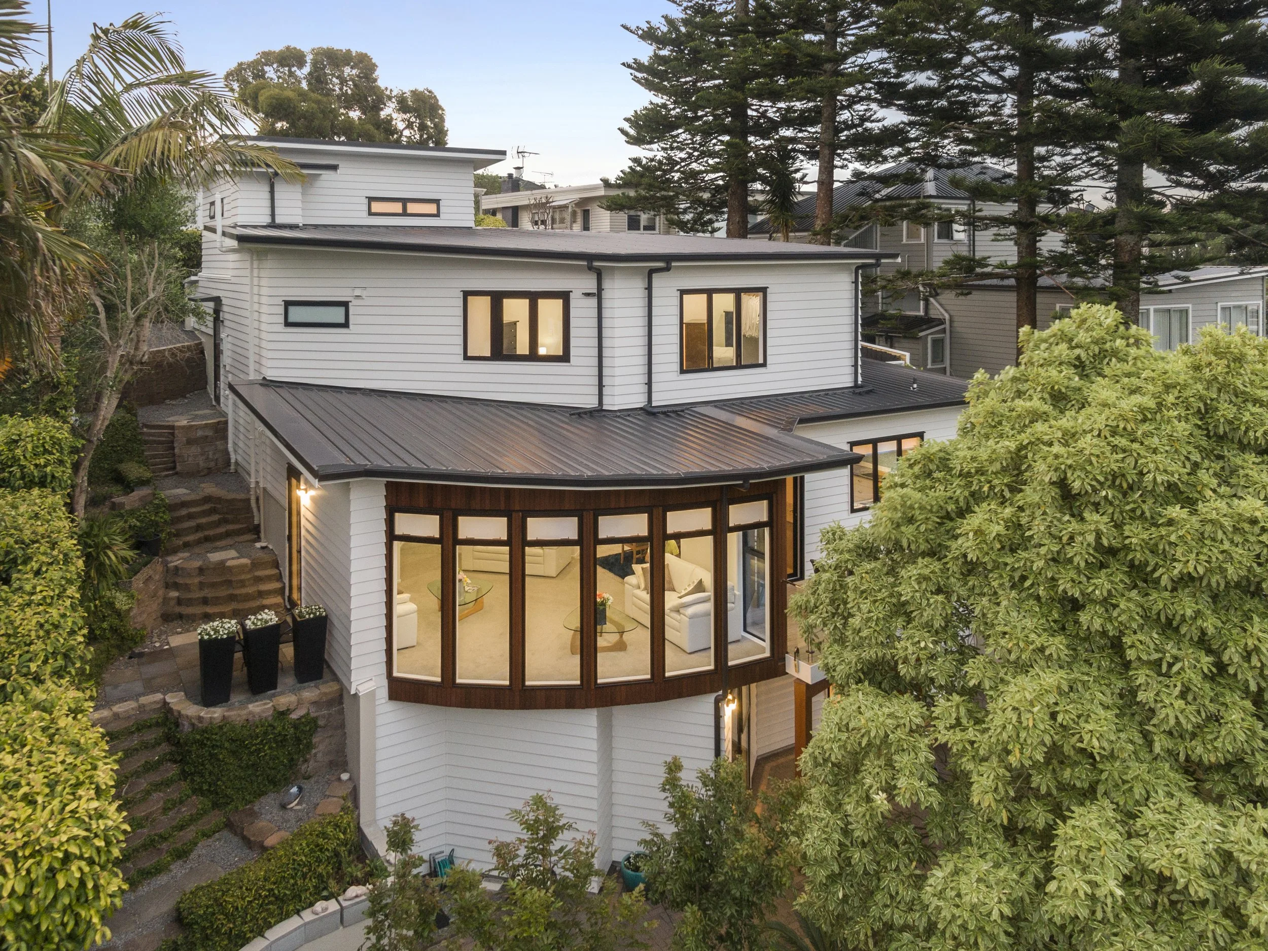 This large family home received a full reclad, re-roof and joinery to mitigate future water ingress issues and to modernize the exterior aesthetics.
